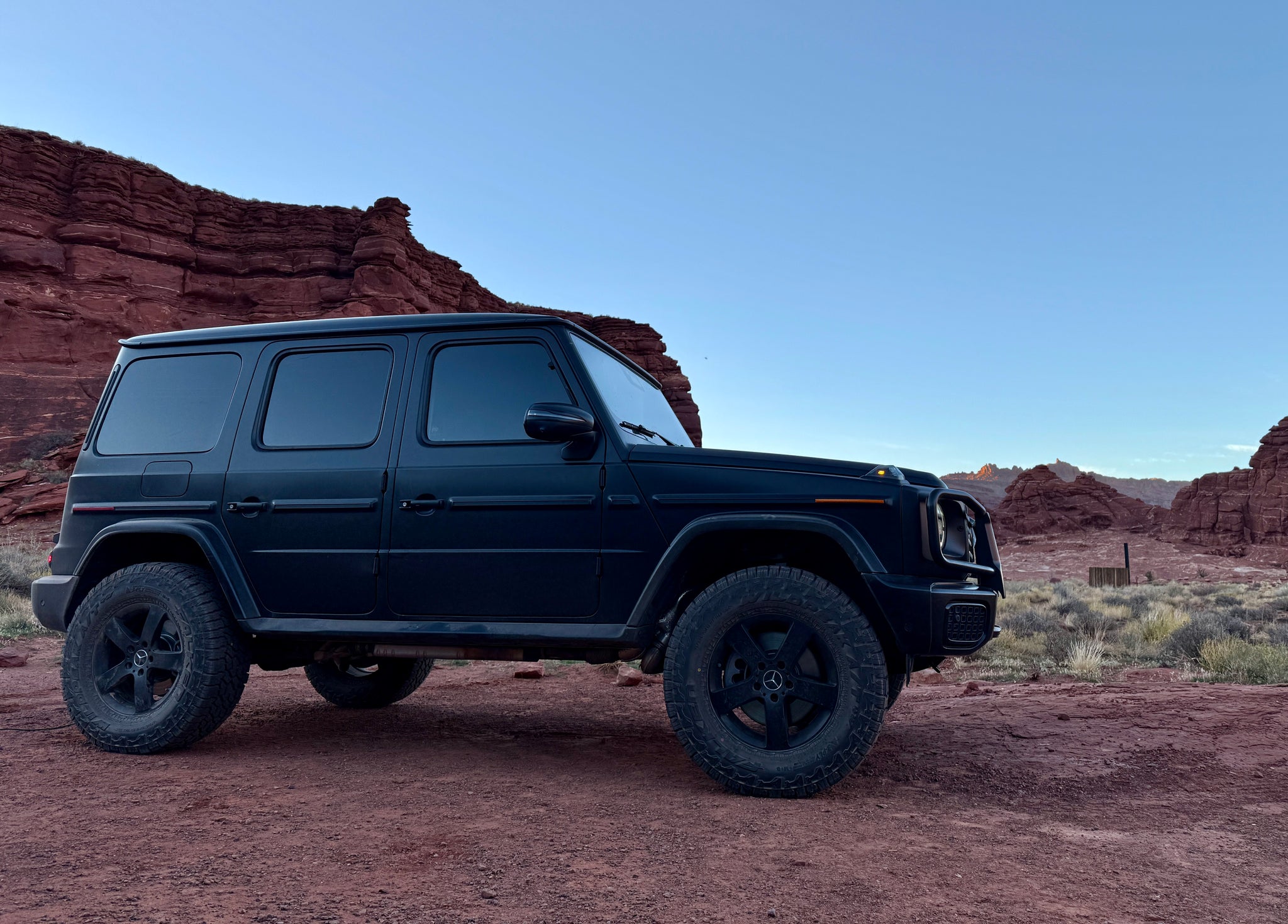 Of the few lift kits on the market for the IFS chassis G Wagons, they typically only provide lift springs and no shocks which do provide "lift" to the truck but they can over-stress the factory shocks/struts as the shocks operating range is not changed and this also means that no down travel is added by these other options so there is minimal off road advantage added. The main reason behind only changing the springs is because with the new chassis G shocks, many have electronics that can not be replicated. If the electronics are removed from the system, error codes appear on the dash. This said, changing springs alone was the "easiest" solution.